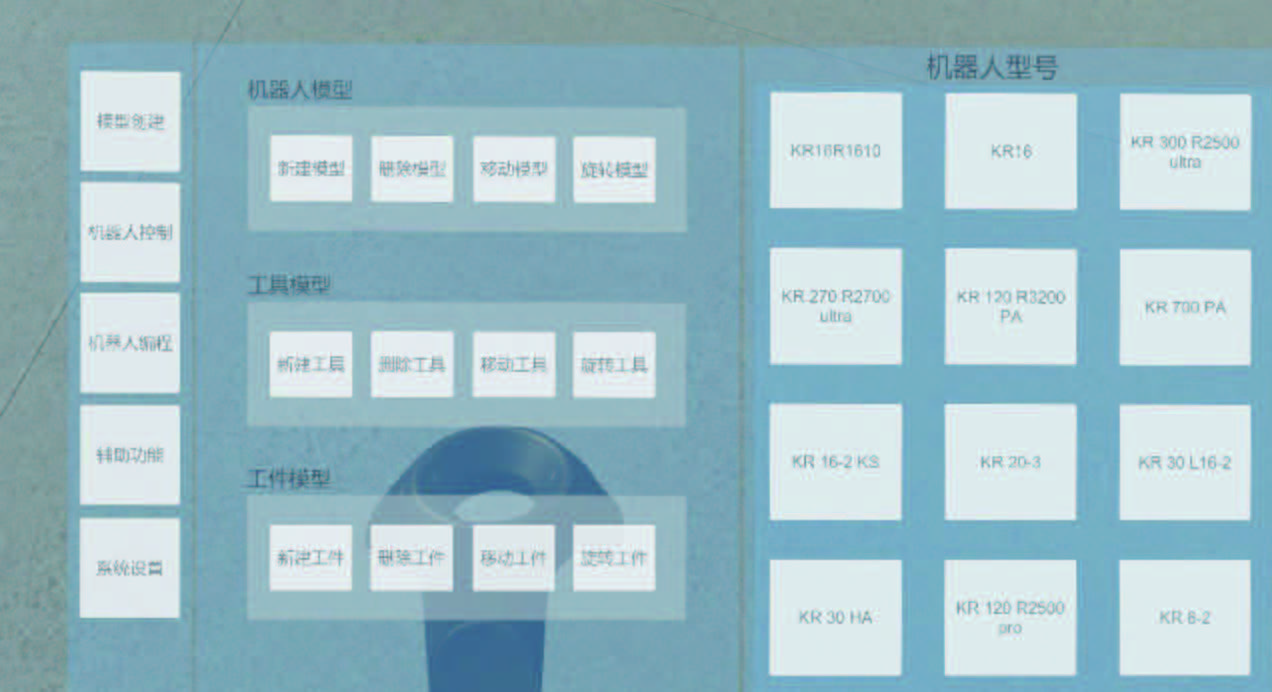 1.1 在主界面上(如下图所示),选择模型创建,即可显示机器人模型、工具模型、工件模型等。