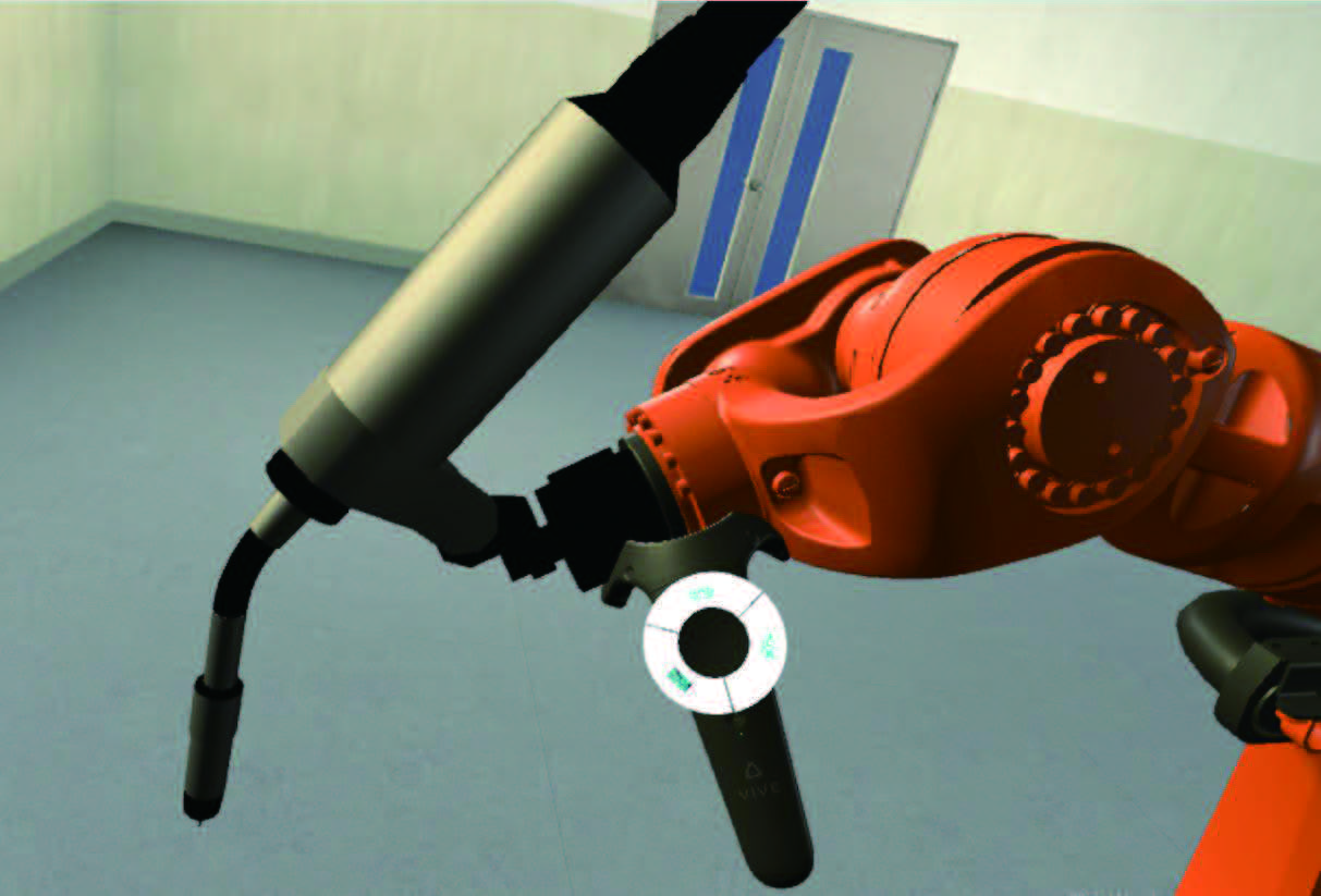 通过VR手柄拖拽机器人的机械臂来牵引示教生成轨迹点,如下图所示。